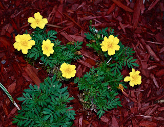 Farmers use marigolds because the scent of the marigold repels animals and insects... and the underground workings of the marigold will repel nematodes (microscopic worms) and other pests for up to 3 years. Cool. I didn't know about the underground workings aspect.